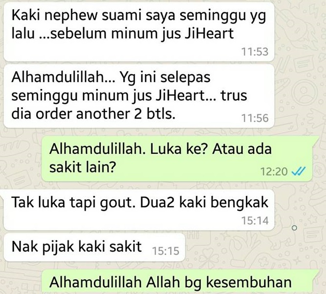 Alhamdulillah kawan kita yang gout ni berkongsi tentang menafaat JiHeart. Jom amalkan JiHeart untuk sihat.