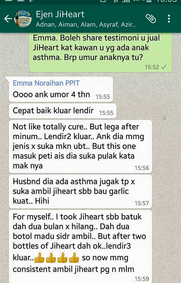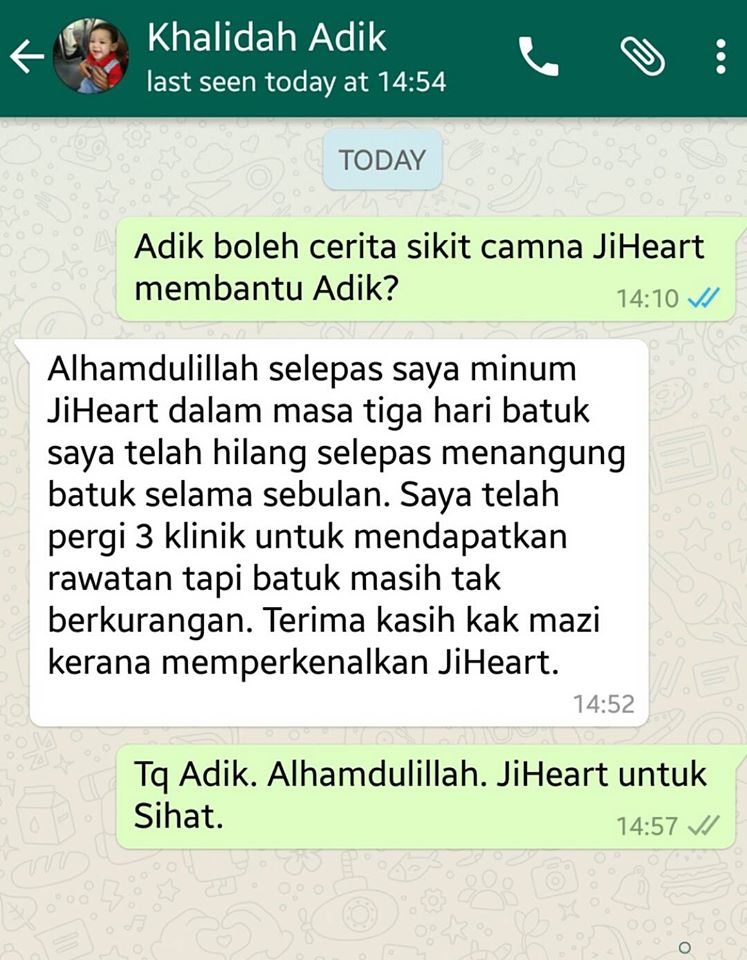 Melegakan Batuk Jus JiHeart insyaAllah berkesan untuk melegakan batuk yang kuat. Antara testimoni yang kita terima: Ramuan dalam JiHeart baik untuk melegakan batuk. Share this: Click to share on X (Opens in new window) X Click to share on Facebook (Opens in new window) Facebook Like Loading...